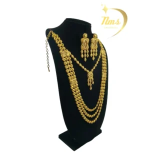3 Layer Traditional Kuwait design Earring with 1 gram Gold Plated Long Haram set.