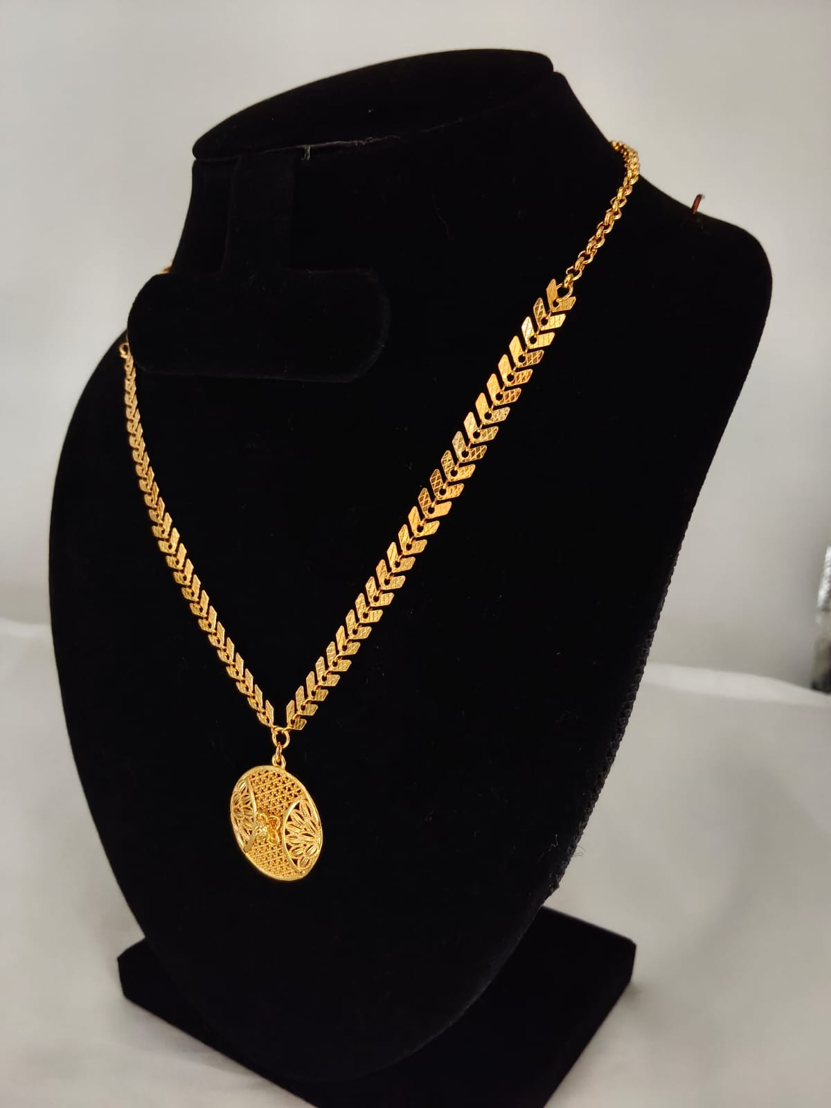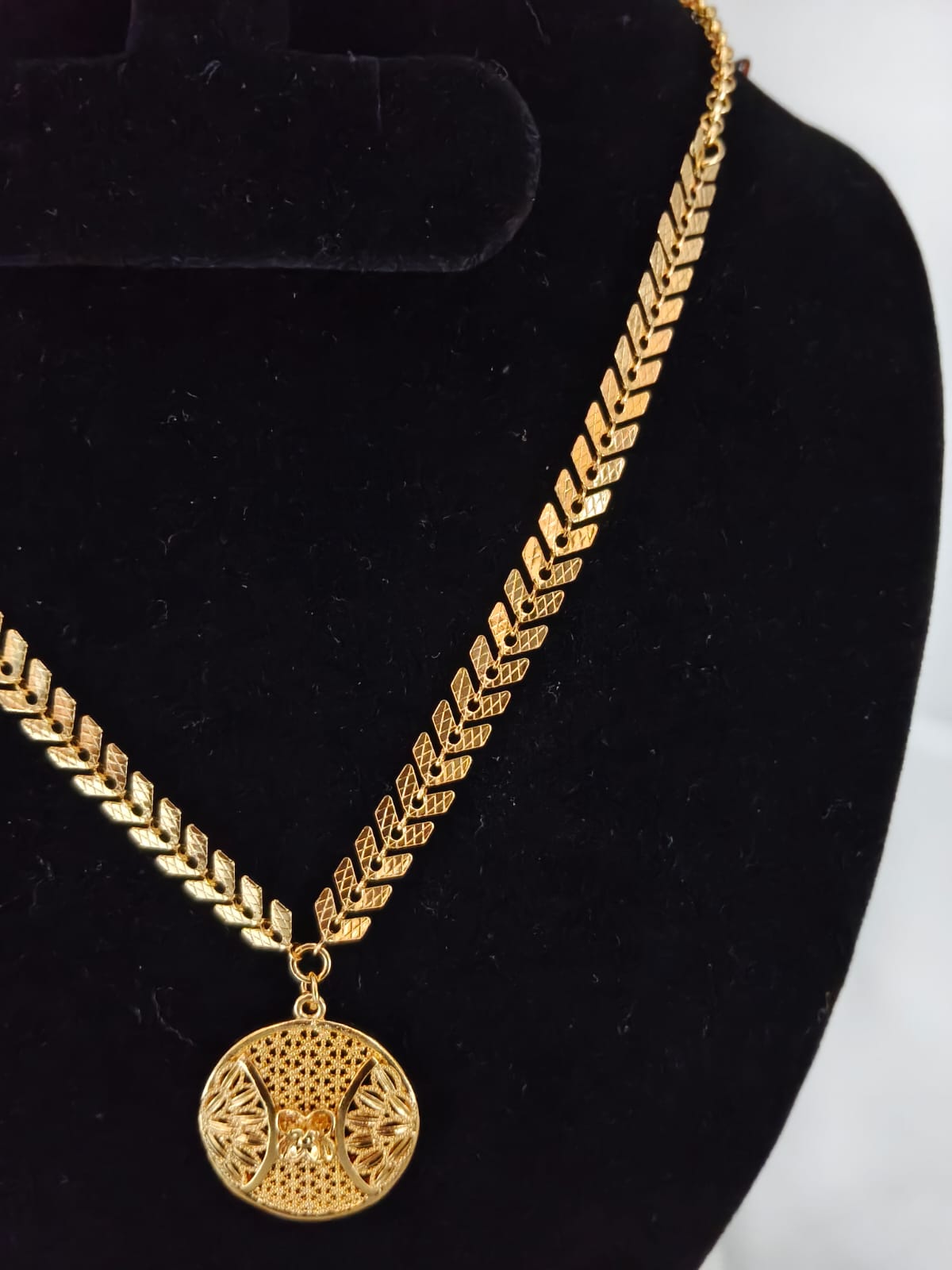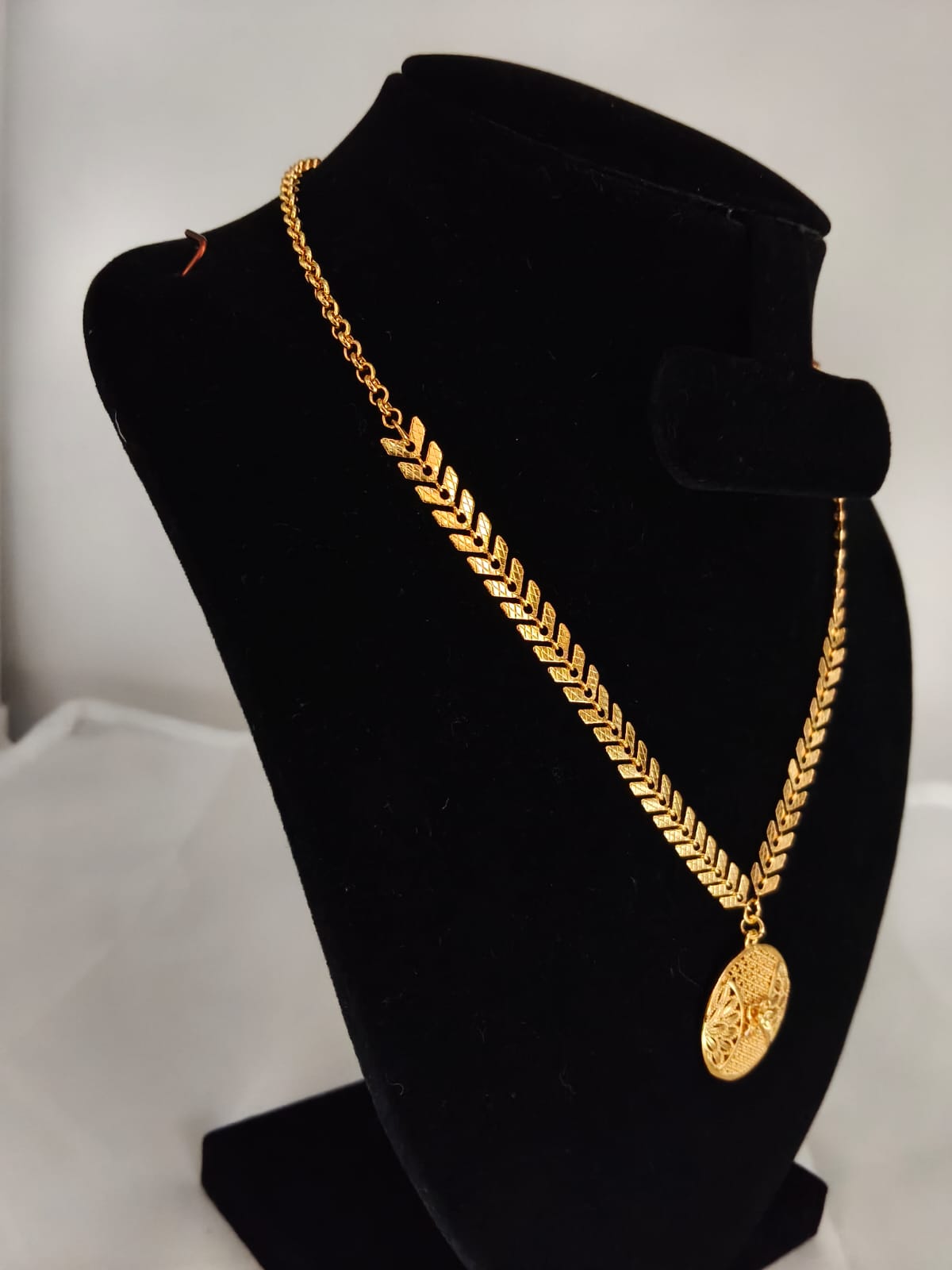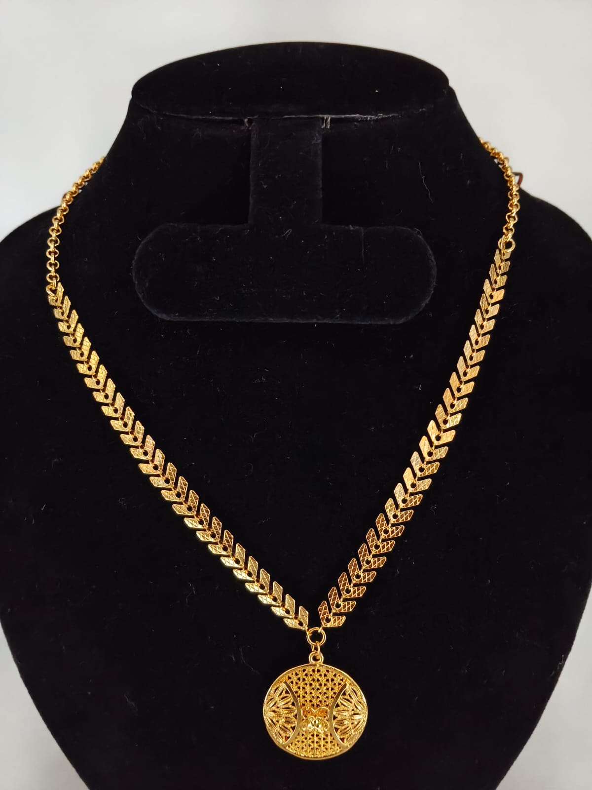 Add a subtle touch of traditional charm to your everyday look with this Gold Plated Leaf Chain Pendant Necklace. The sleek design makes it perfect for both daily wear and small functions.