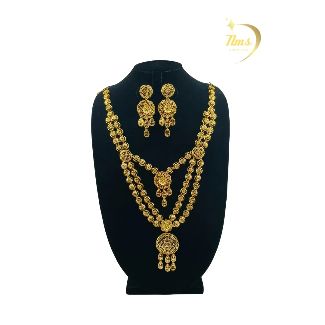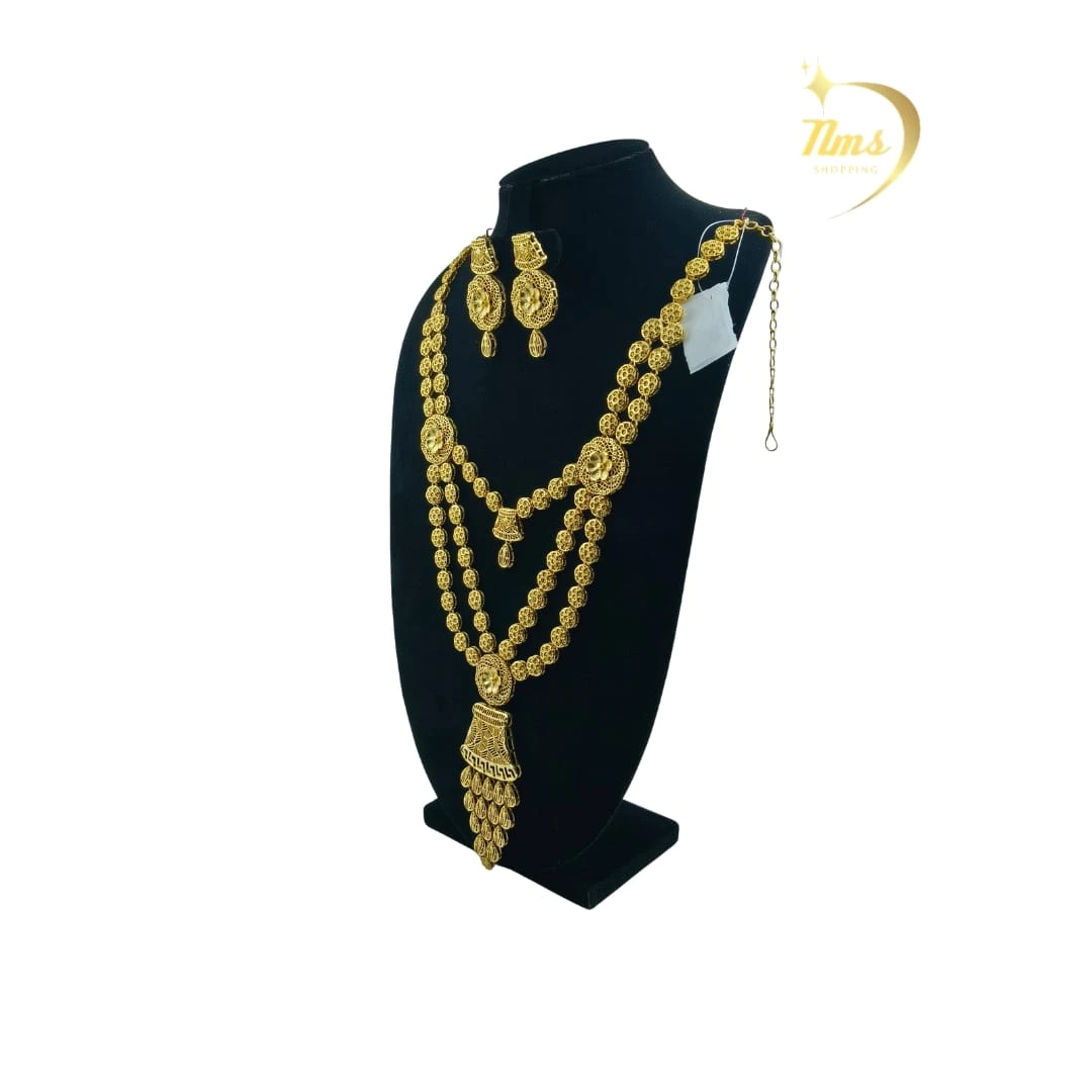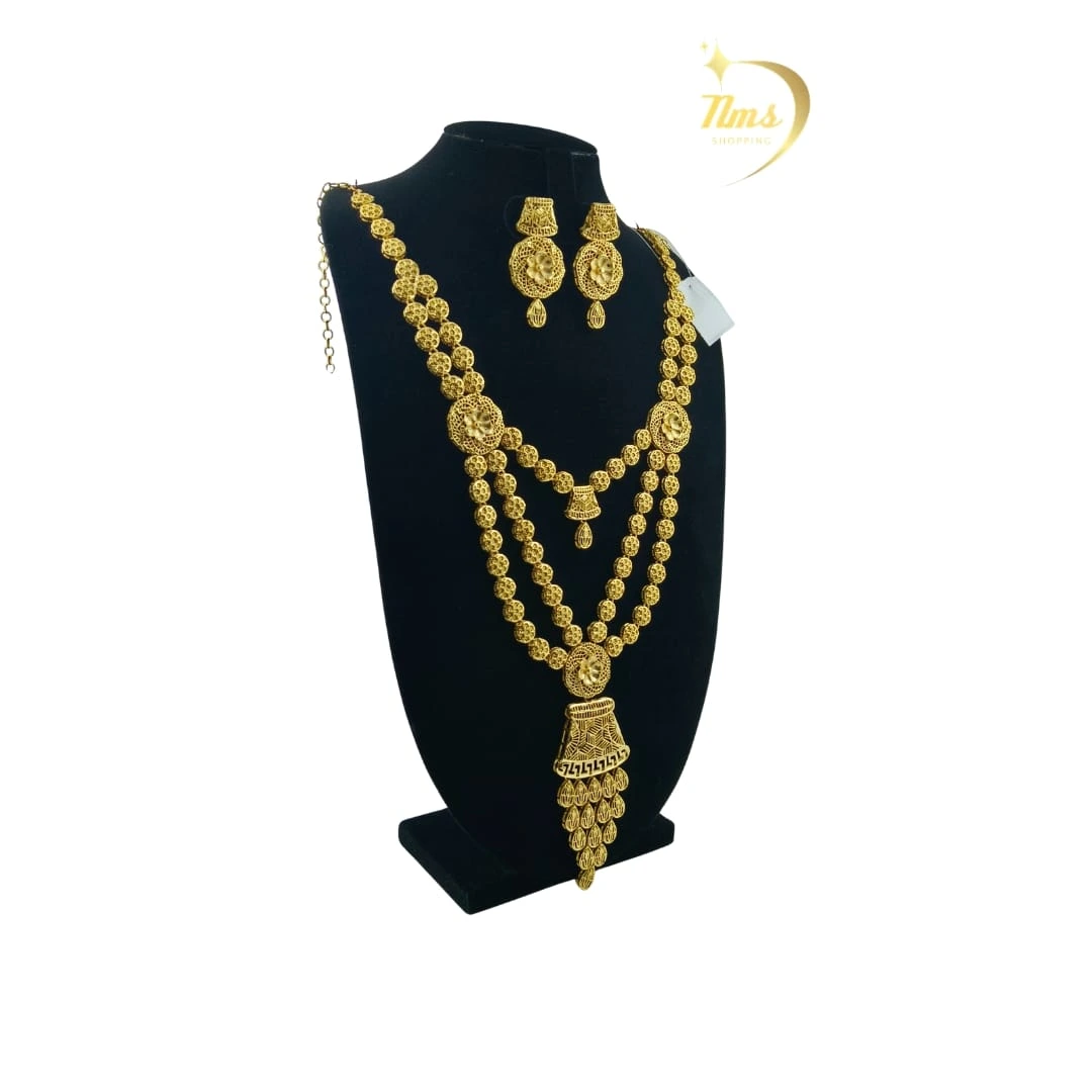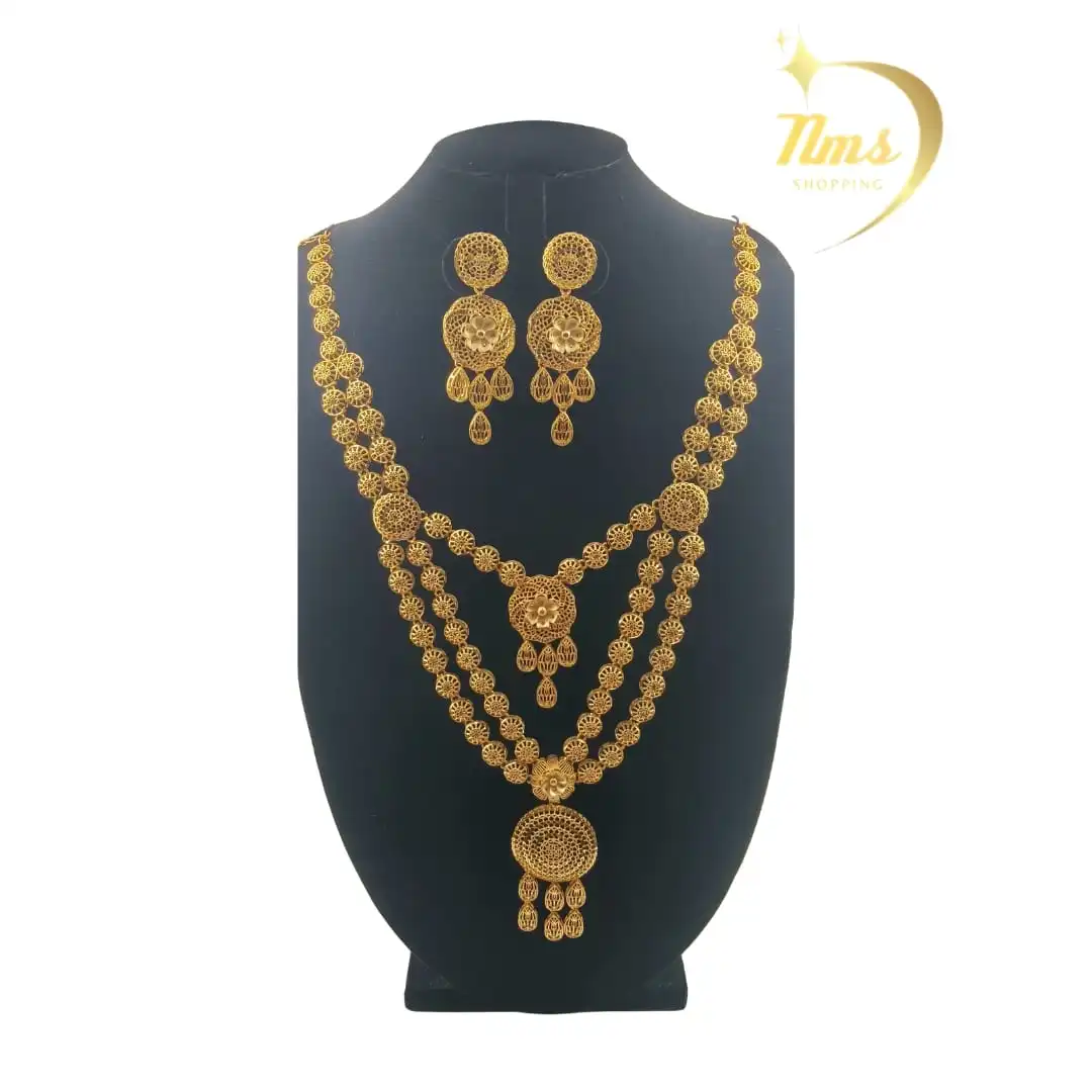 3 Layer Traditional Kuwait design Earring with 1 gram Gold Plated Long Haram set.
